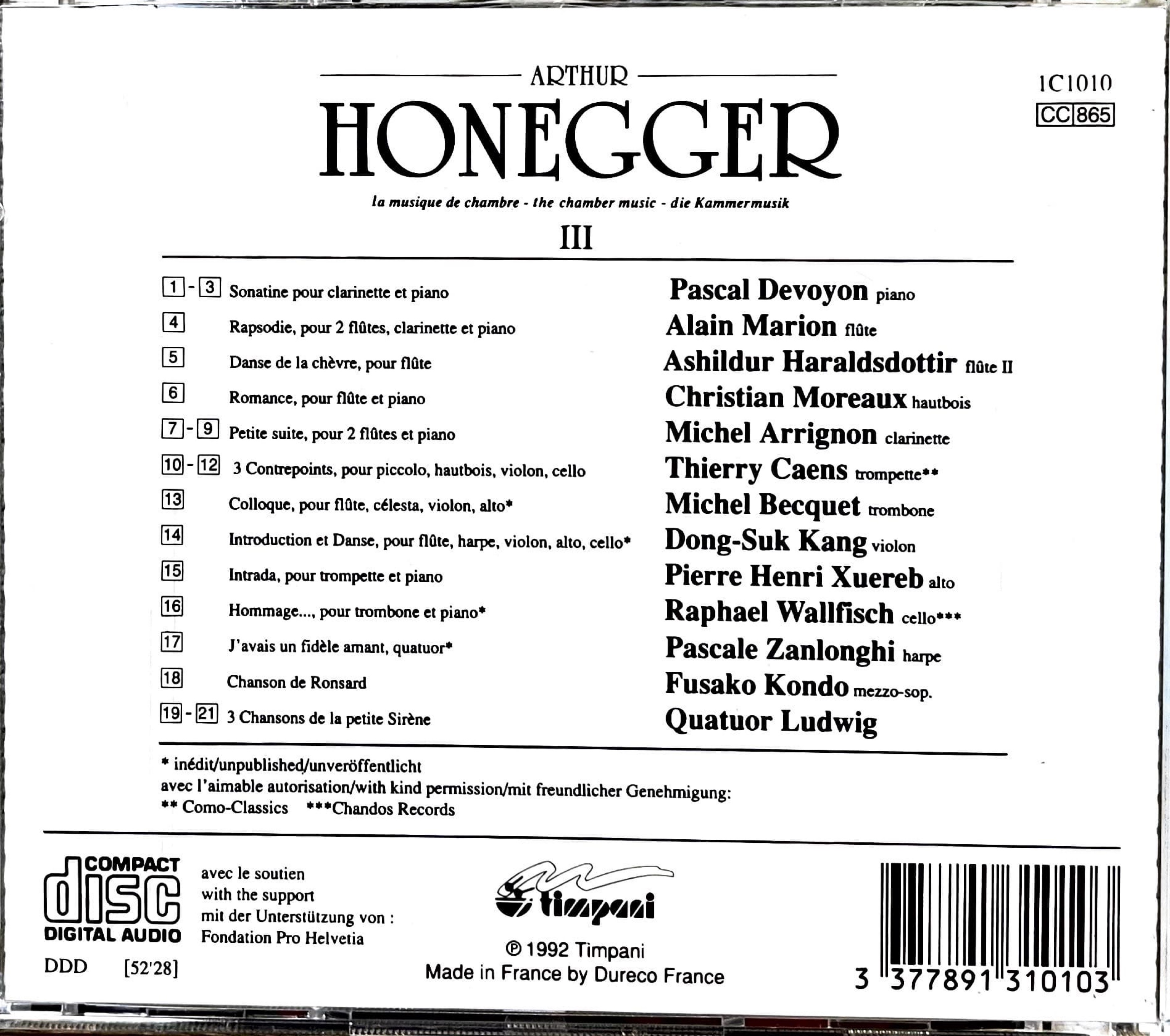 Arthur Honegger – La Musique De Chambre - The Chamber Music - Die Kammermusik CDⅢ