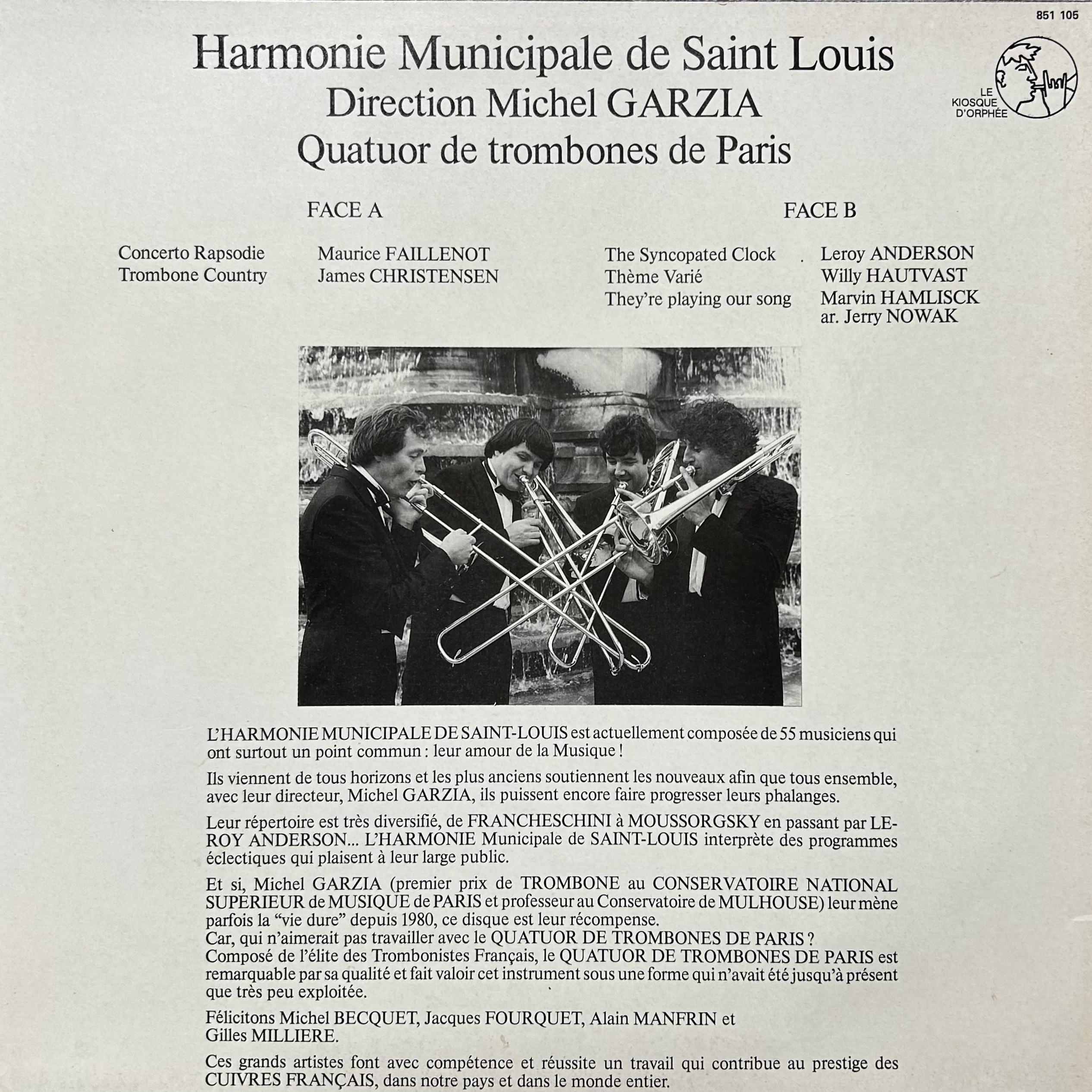 HARMONIE MUNICIPALE de SAINT LOUIS , Le Quatuor de Trombones de Paris ,Cond,Michel GARZIA