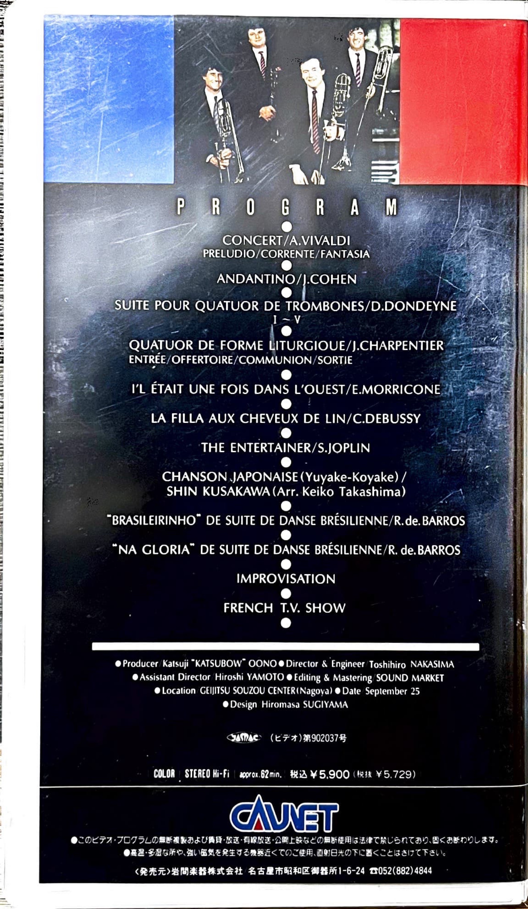 CONCERT-PRELUDIO,CORRENTE,FANTASIA-A.VIVALDI ・ ANDANTINO-J.COHEN ・ SUITE POUR QUATUOR DE TROMBONES-Ⅰ~Ⅴ-D.DONDEYNE ・ QUATUOR DE FORME LITURGIQUE-ENTRÈE,OFFERTOIRE,COMMUNION,SORTIE-J.CHARPENTIER ・ IL ÈTAIT UNE FOIS DANS L'QUEST-E.MORRICONE ・ LA FILLE AUX CHEVEUX DE LIN-C.DEBUSSY ・ THE ENTERTAINER-S.JOPLIN ・ CHANSON JAPONAISE (Yuyake-Koyake)-SHIN KUSAKAWA(ARR. Keiko Takashima) ・ ''BRASILEIRINHO'' DE SUITE DE DANCE BRÈSILIENNE-R.de.BARROS ・ ''NA GLOLIA'' DE SUITE DE DANCE BRÈSILIENNE-R.de.BARROS ・ IMPROVISATION ・ FRENCH T.V. SHOW